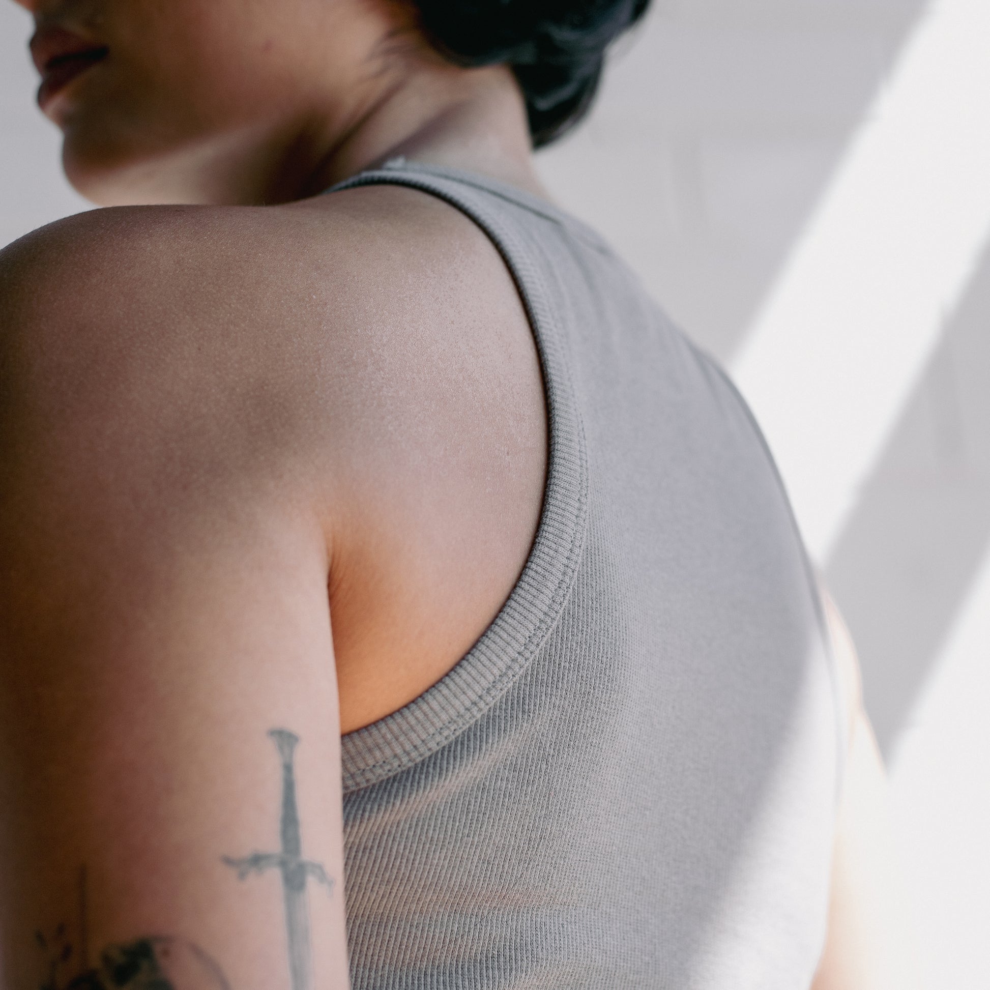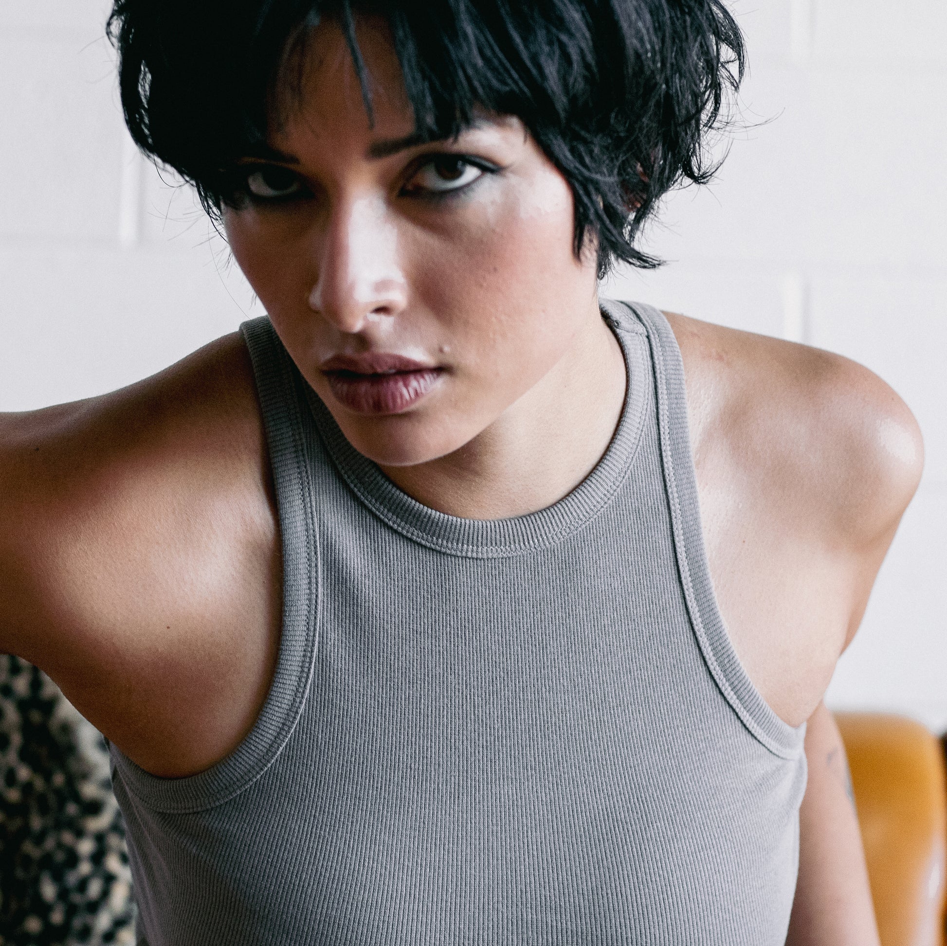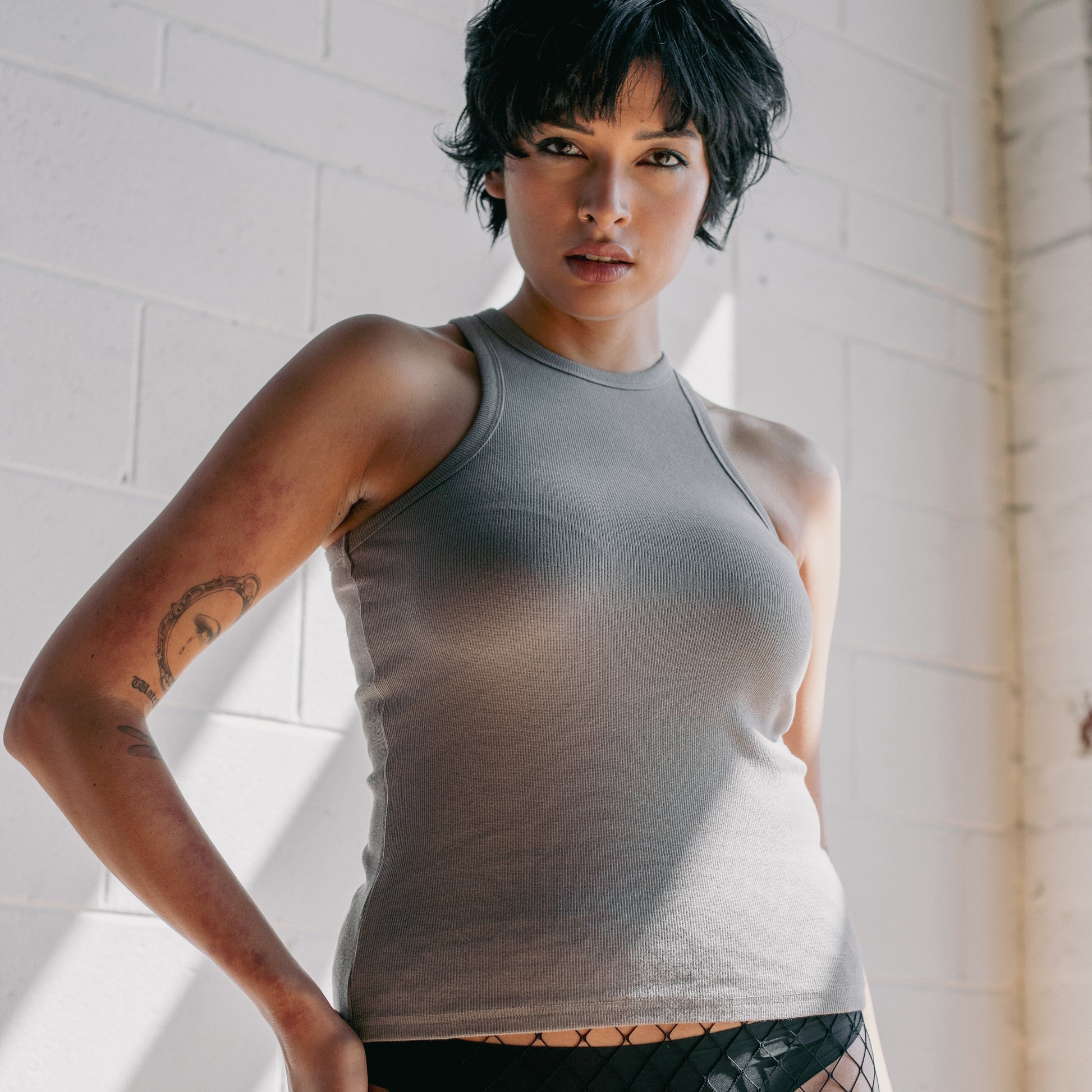 The idol tank will become your wardrobe staple with its masculine lines and feminine style constructed in a premium rib with just the right stretch retention that moulds to the body for that perfect fit.